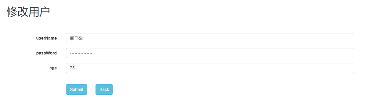 MongoTemplate,并实现一些简单的CRUD:@Component public class UserDaoImpl implements UserDao { @Autowired private MongoTemplate mongoTemplate; @Override public void saveUser(UserEntity user) { mongoTemplate.save(user); } @Override public UserEntity findUserByUserName(String userName) { Query query = new Query(Criteria.where("userName").is(userName)); return mongoTemplate.findOne(query, UserEntity.class); } @Override public void updateUser(UserEntity user) { Query query = new Query(Criteria.where("id").is(user.getId())); Update update = new Update(); update.set("userName", user.getUserName()); update.set("passWord", user.getPassWord()); mongoTemplate.updateFirst(query, update, UserEntity.class); } @Override public void deleteUserById(Long id) { Query query = new Query(Criteria.where("id").is(id)); mongoTemplate.remove(query, UserEntity.class); } }